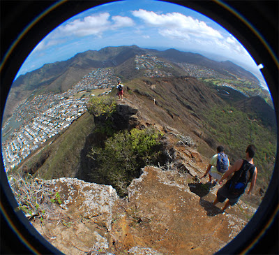 We did the Koko Crater Rim last Sunday, did it counter clockwise, all the way around the rim, starting and ending at the botanical garden. I've done Manamana, Kalena, Olomana and several sections of the Koolau Summit between Konahuanui and Mariner's Ridge but the section of Koko Crater between the summit and the end on the mauka side had to be the hairiest stuff so far. I didn't take a camera as we weren't expecting it to be too bad but wished I had. That one is gnarly!